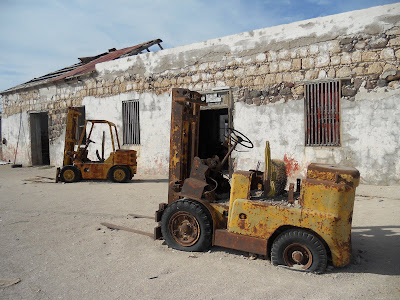 The view of the salt flats thru the door of one of the abandoned old buildings. We found out Carmen Island is now privately owned and there is a hunting lodge(there are wild sheep on the island)located in the bay where the salt mine was located. The night we stayed in that bay they had clients coming so they politely asked us to leave...bummer.